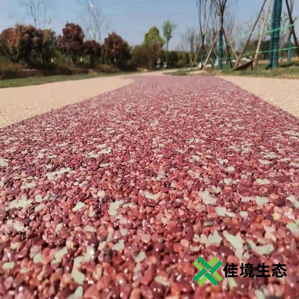 其特點是運用天然石頭自身的色彩、形狀以及長期潤濕的光澤效果,使面層骨料實現自然的非人工雕琢的自然鋪面效果。